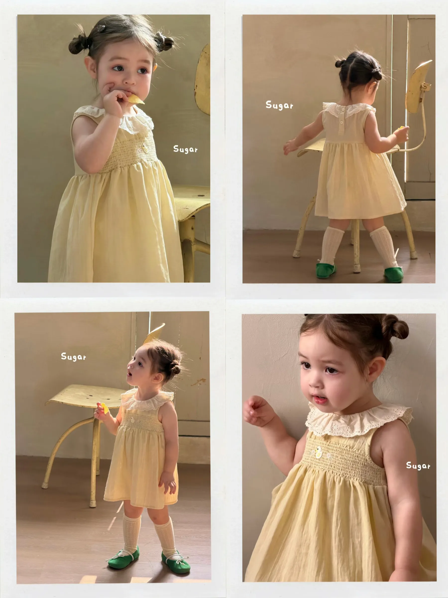 花边领+打揽工艺,无袖A字版型,